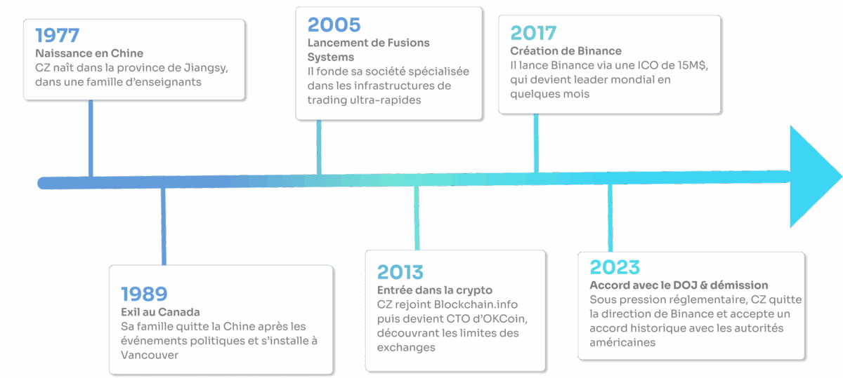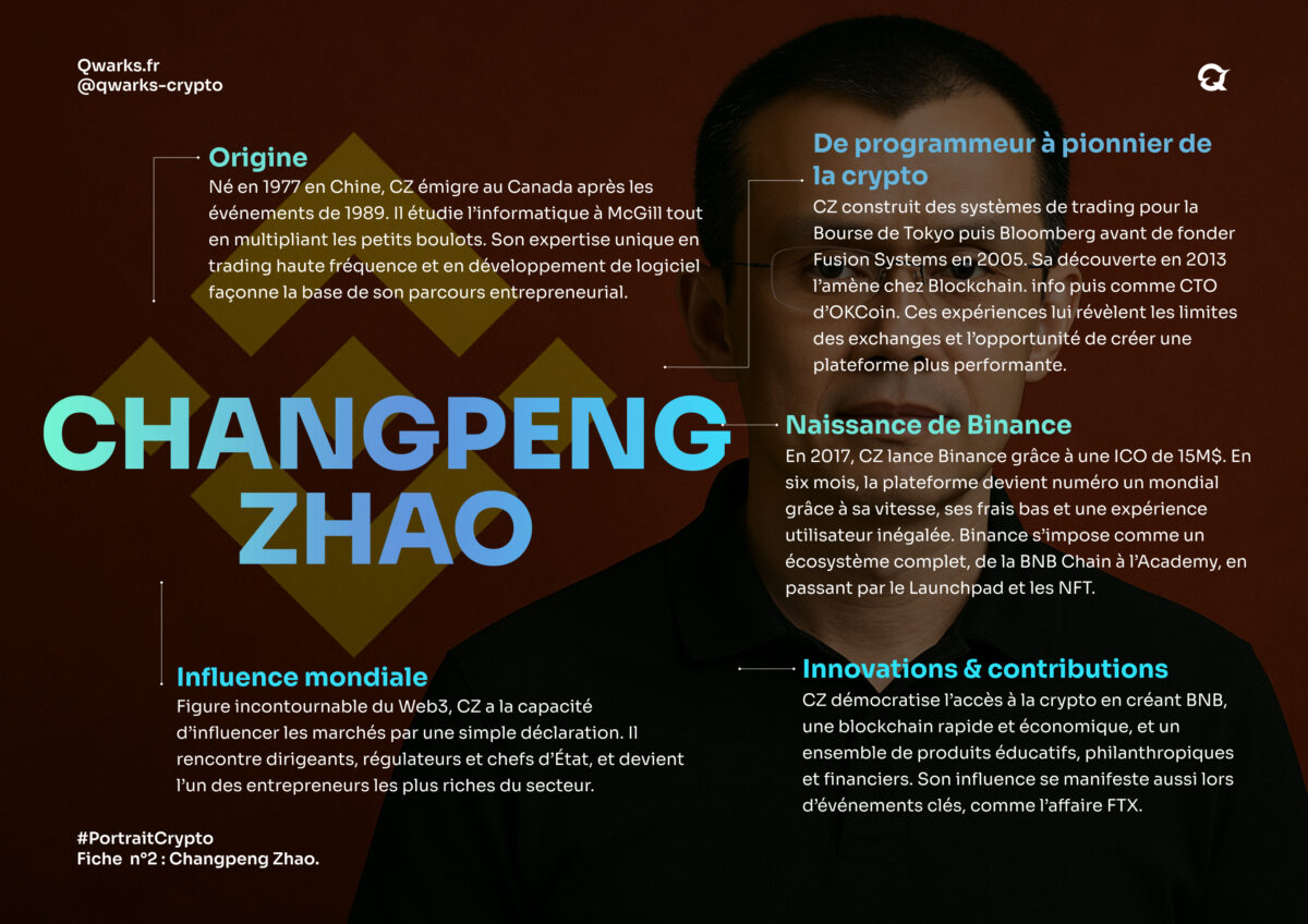 Changpeng Zhao, dit CZ, est l’une des figures les plus influentes, et controversées, de l’histoire des cryptomonnaies. Développeur brillant, expert du trading haute fréquence et entrepreneur visionnaire, il a fondé Binance, devenue en quelques mois la première plateforme crypto mondiale.